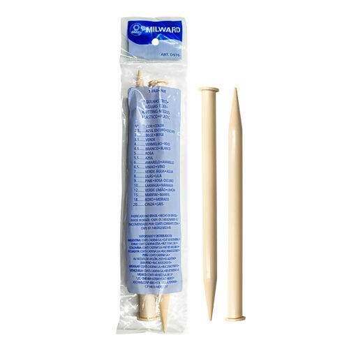 Por serem fabricadas com plástico, são muito leves e práticas. Cada par de agulhas vem embalada em um saco plástico.