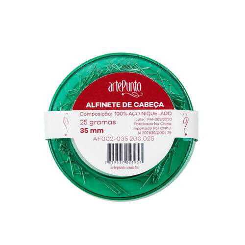 Descrição Alfinete de Cabeça ArtePunto 35 mm Niquelado - Estojo c/ 25 gr