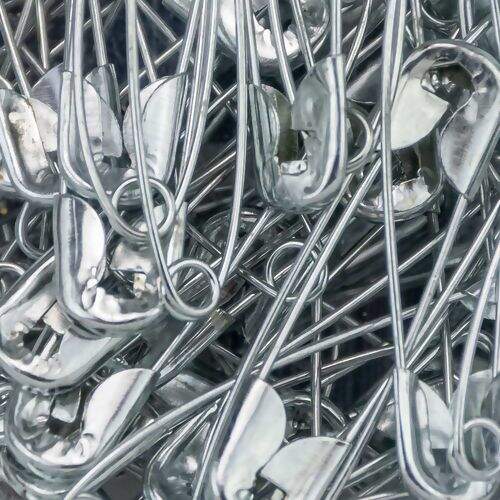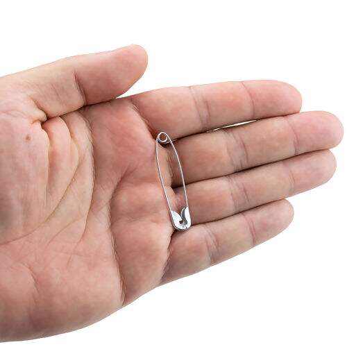 Alfinete de segurança medindo 4,5 cm para ser usado como auxiliar na costura, além de poder ser usado para prender tags e etiquetas em roupas.