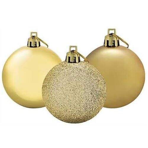 Bola de Natal 80 mm Mista Dourada Pacote com 06 unidades