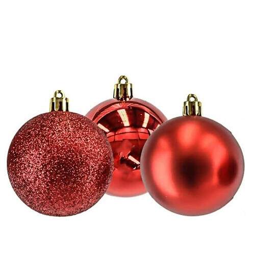 Bola de Natal 80 mm Mista Vermelha Pacote com 06 unidades