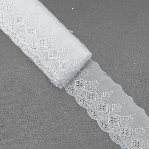 Informações Têxteis Bordado Inglês 7,0 cm Ref. BP027 Branco - Peça c/ 13,70 mt