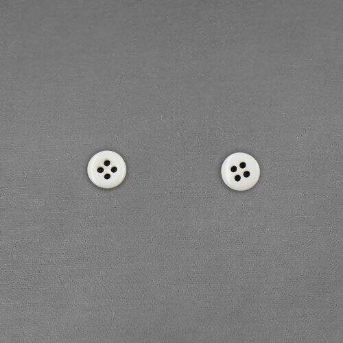 Botões redondos com 04 furos para camisa. Possui ambos os lados leitoso.
