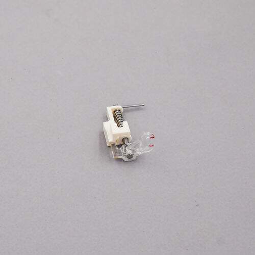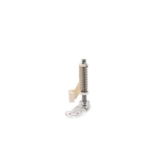 É um ótimo calcador para quem não possui prática com o quilt, contém uma mola em sua haste que proporciona flexibilidade para um melhor deslizamento do tecido e facilita o seguimento de um padrão.