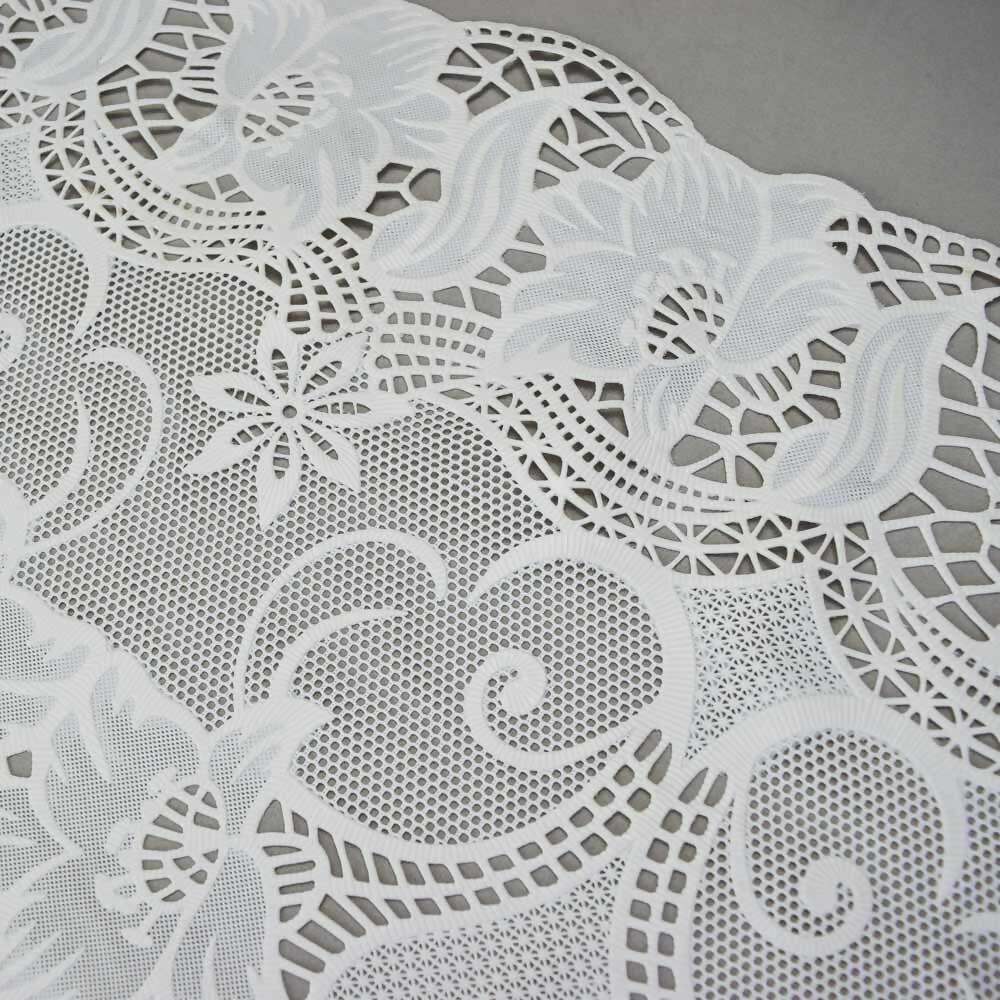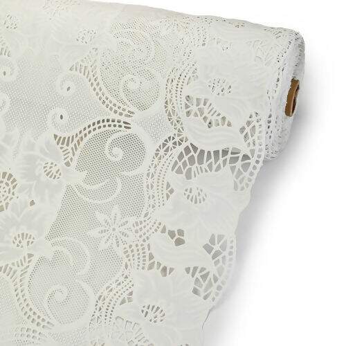 Com uma delicada renda plástica, este caminho de mesa é perfeito para adicionar um toque especial às suas ocasiões especiais.
