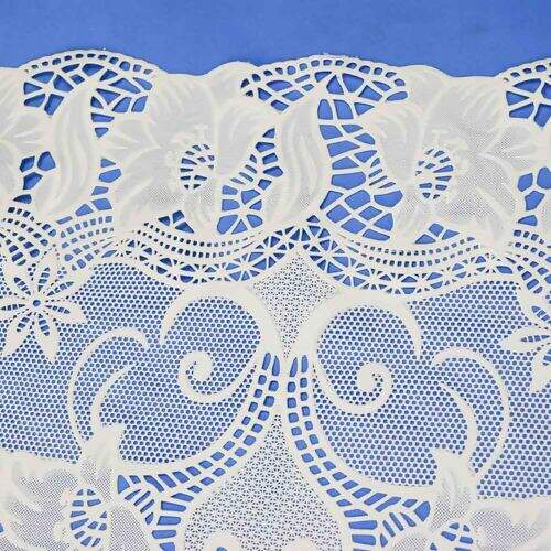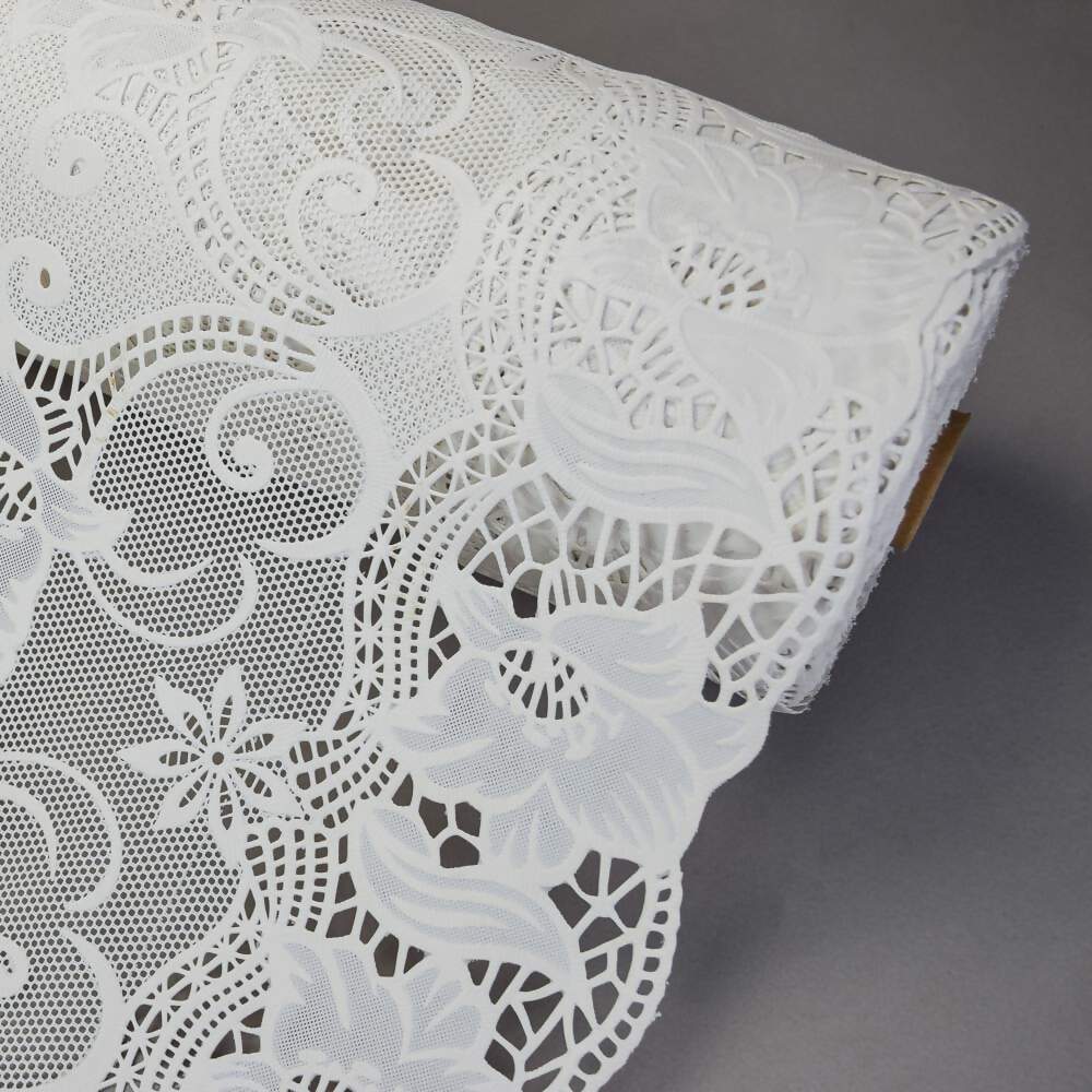 Descrição Caminho de Mesa Plástico Rendado 0,50m Largura - 1 Metro Cor: Aurora Branco