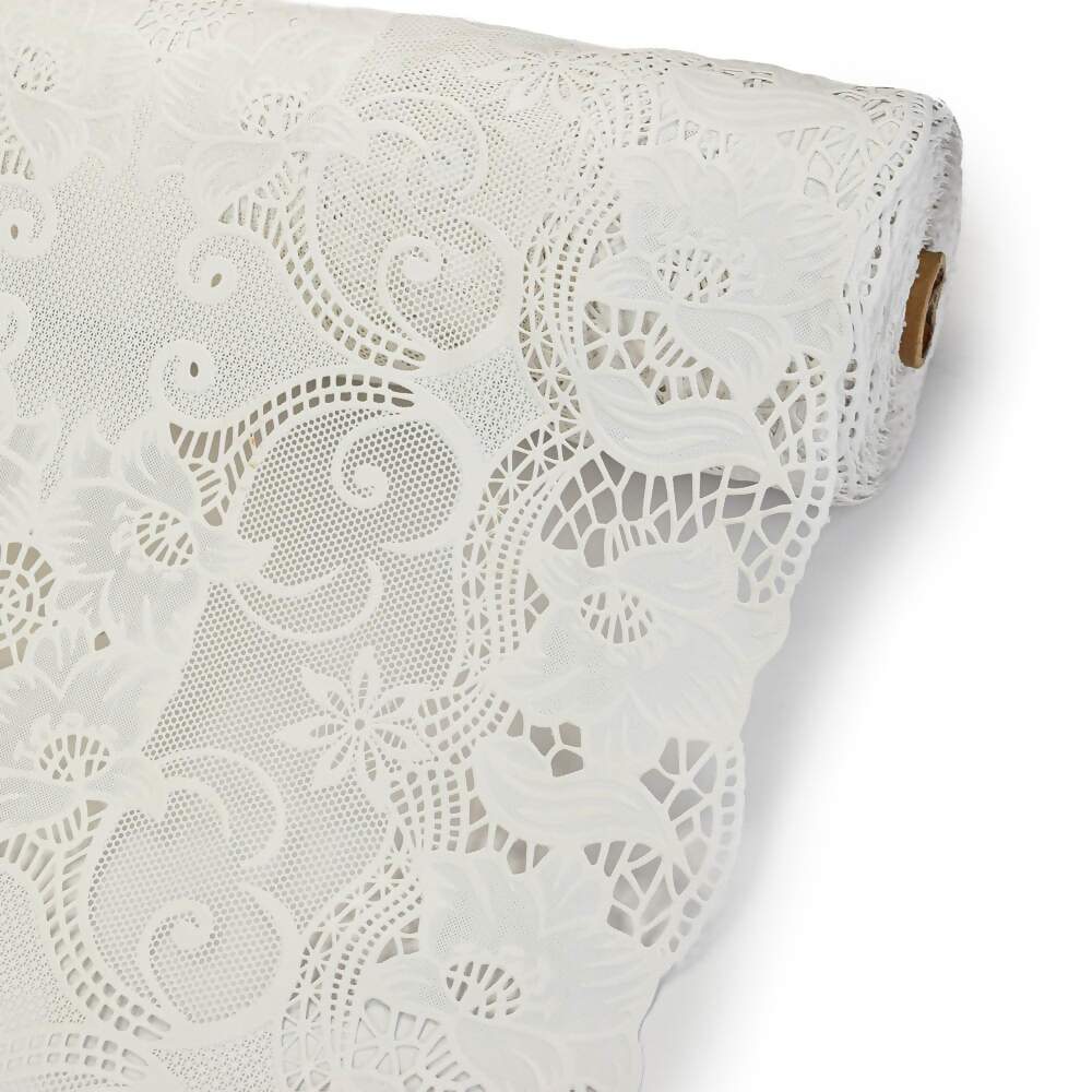 Caminho de Mesa Plástico Rendado 0,50m Largura - 1 Metro Cor: Aurora Branco
