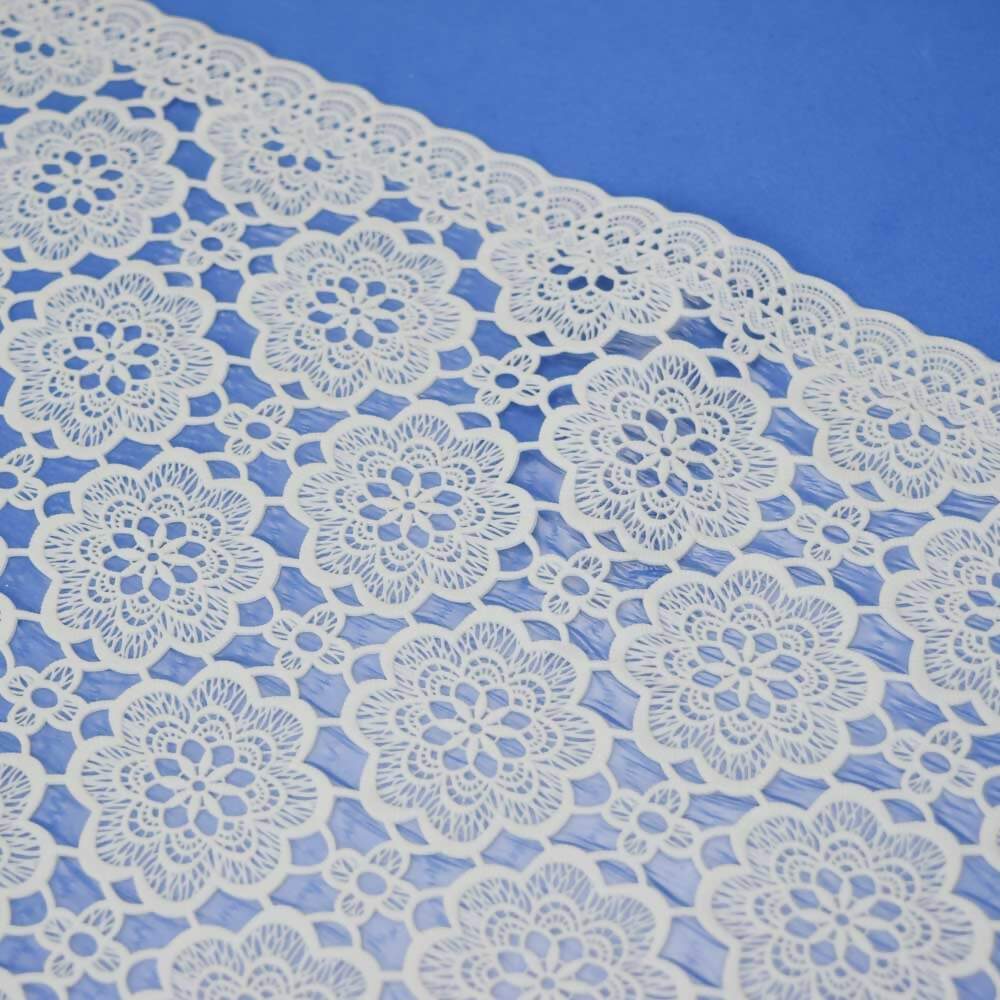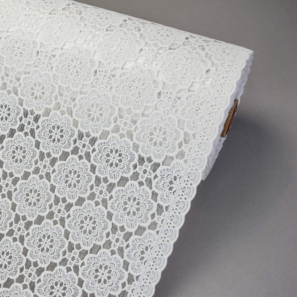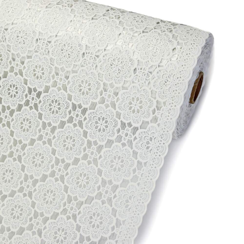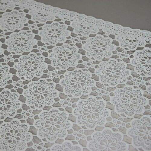 Descrição Caminho de Mesa Plástico Rendado 0,50m Largura - 1 Metro Cor: Peonia Branco