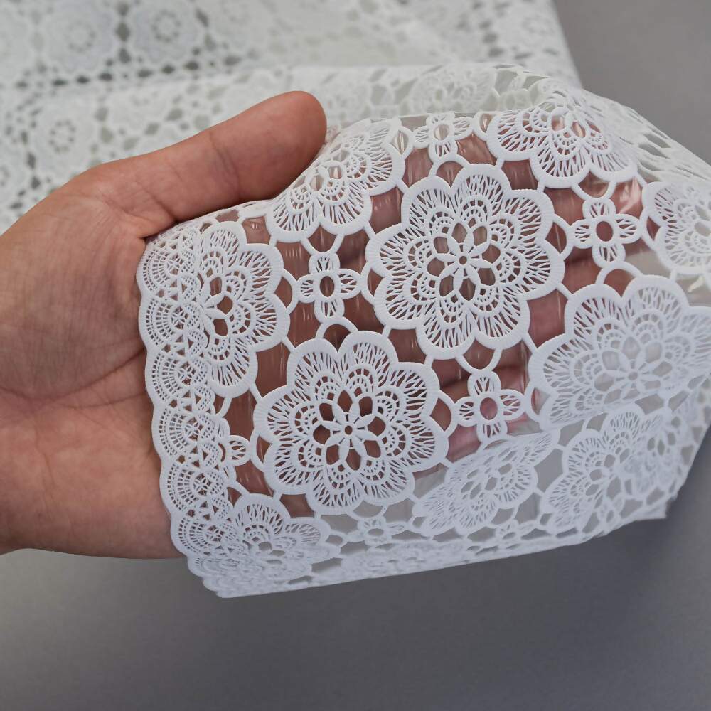 Com uma delicada renda plástica, este caminho de mesa é perfeito para adicionar um toque especial às suas ocasiões especiais.
