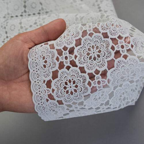 Caminho de Mesa Plástico Rendado 0,50m Largura - 1 Metro Cor: Peonia Branco