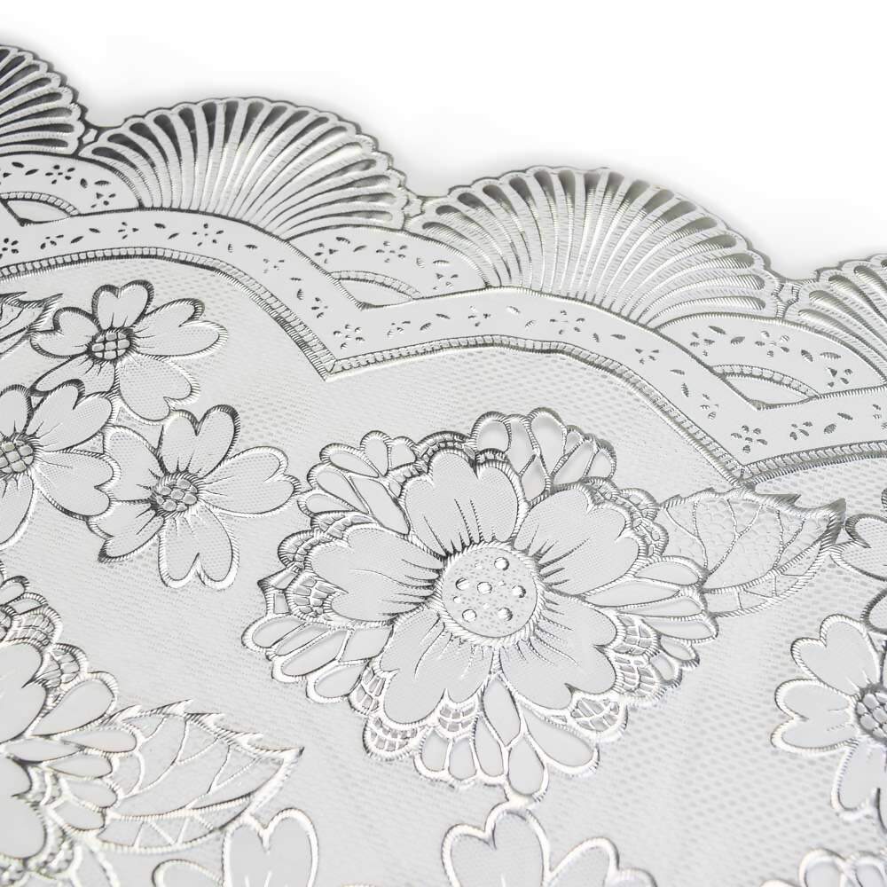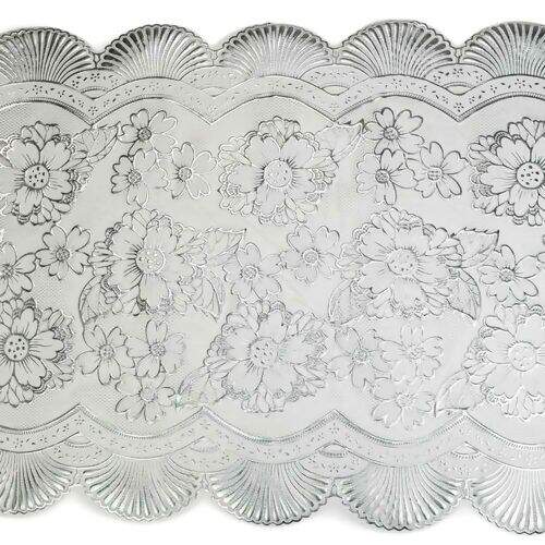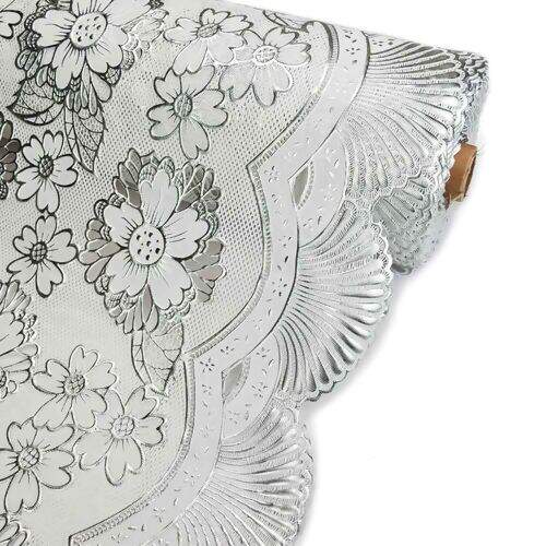 Caminho de Mesa Plástico Rendado 0,50m Largura - 1 Metro Cor: Silvery Metalizado Prata