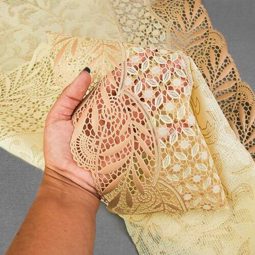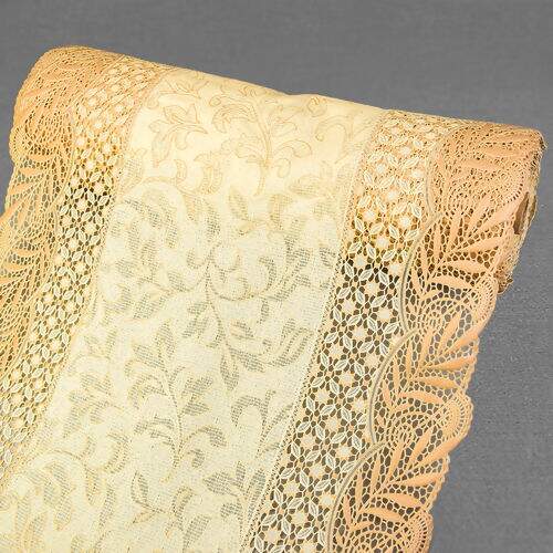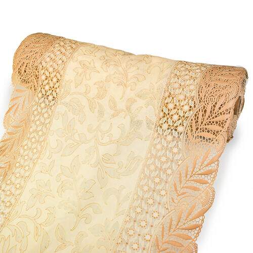 Descrição Caminho de Mesa Plástico Rendado 0,50m Largura - 1 Metro Cor: Trigo Bege