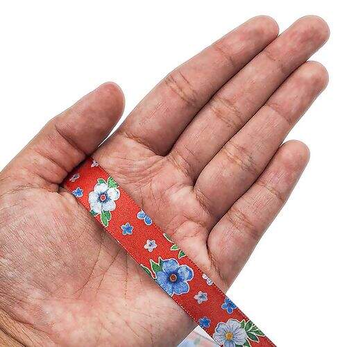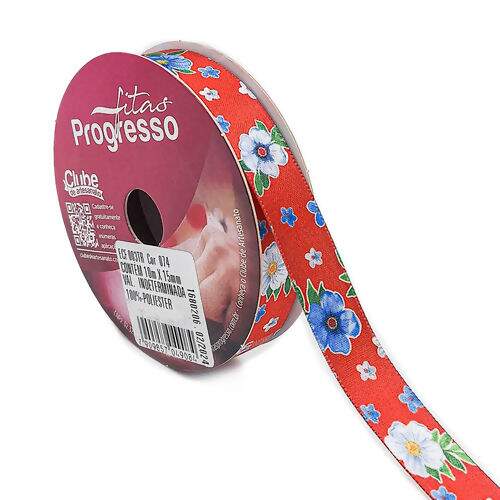 Fita de cetim com linda estampa floral chita com fundo vermelho, possui 1,5 cm de largura, ideal para decoração, laços de cabelo, presentes e artesanato em geral.