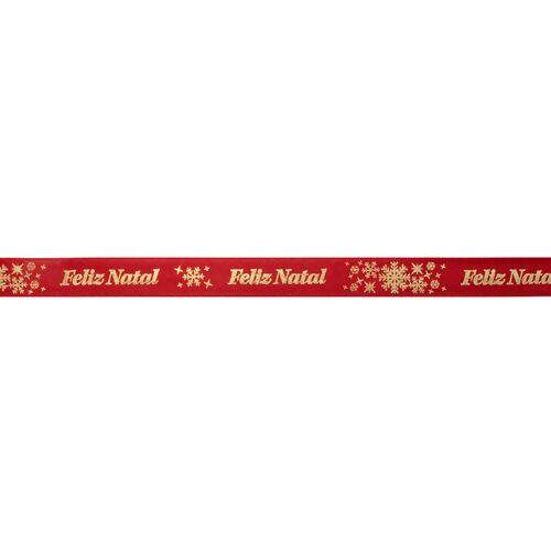 fornecedor_bling Fita de Cetim Estampada 15 mm Cor 400 Frase Feliz Natal Vermelho - Peça c/ 10 mt