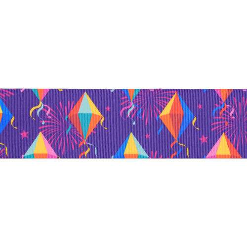 NCM Fita de Gorgurão Estampada 38 mm Balões Juninos Cor 248 - Peça c/ 10 mt