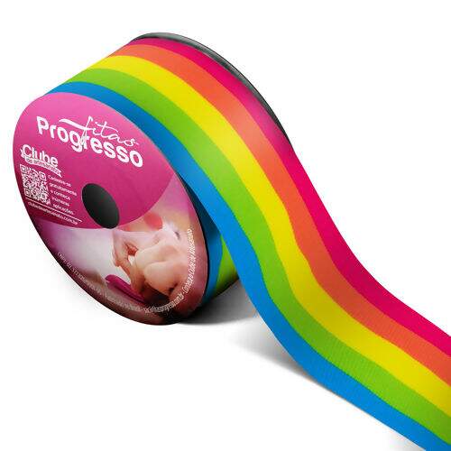 fornecedor_bling Fita de Gorgurão Estampada 38 mm Cor 166 Listras Multicolor - Peça c/ 10 mt