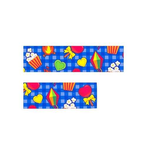 fornecedor_bling Fita de Gorgurão Estampada 38 mm Junina Azul - Peça c/ 10 mt