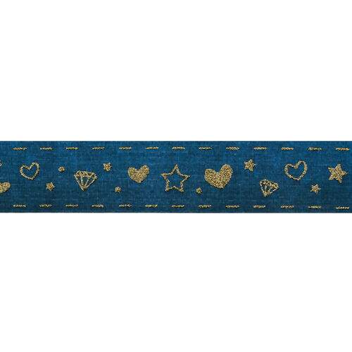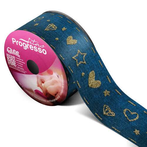 Descrição Fita de Gorgurão Estampada 38 mm Linha Glitter Digital Corações Cor 002 Dourado - Peça c/ 10 mt