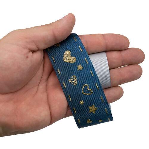 NCM Fita de Gorgurão Estampada 38 mm Linha Glitter Digital Corações Cor 002 Dourado - Peça c/ 10 mt