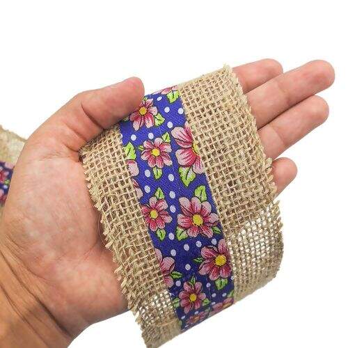 Fita de Juta 80 mm Trama Fechada com Chita - Peça com 9,5 metros