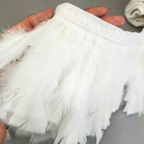 Base: Penas costuradas em uma fita de TNT, garantindo durabilidade e fácil aplicação.