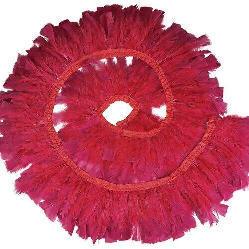 Composição: Penas naturais tingidas artificialmente, proporcionando cores vibrantes e duradouras.