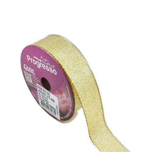 Fita Metalizada Progresso 25 mm M004 Cor Ouro - Peça c/ 10 mt