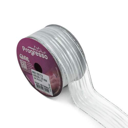 Fita Metalizada Progresso 38 mm M007 Cor Prata - Peça c/ 10 mt