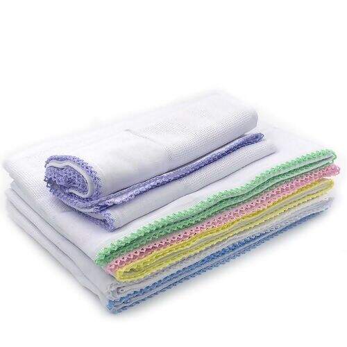 A Fralda Nicoli é feita de algodão macio, medindo 80 x 80 cm e com acabamento em crochê.