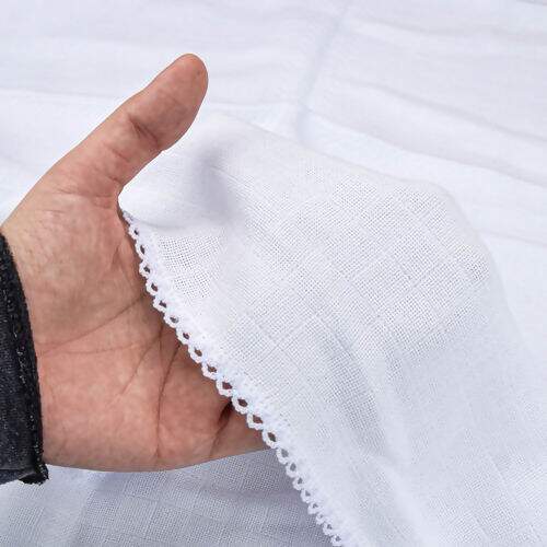 Produzida com um tecido macio e confortável, a fralda quadriculada apresenta um belo acabamento em crochet na cor branca, que confere um toque delicado e elegante ao produto.