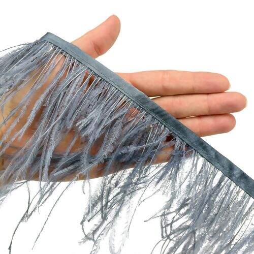 Franja de Plumas de Avestruz (Meio Metro) - Cinza Escuro