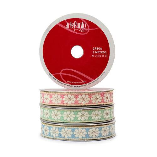 Grega Floral Margaridas ArtePunto 1,7 cm - Peça c/ 9 mt