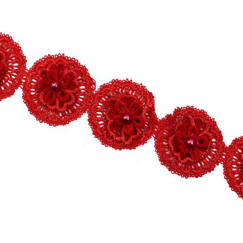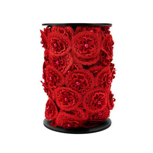 Descrição Guipir com Margarida de Veludo e Pérola Vermelho - 1 Metro