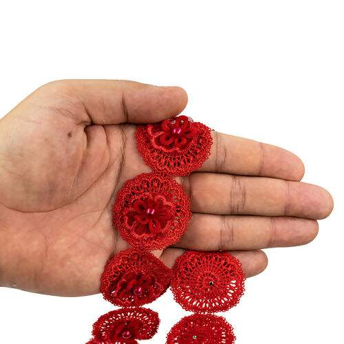 Guipir com Margarida de Veludo e Pérola Vermelho - 1 Metro
