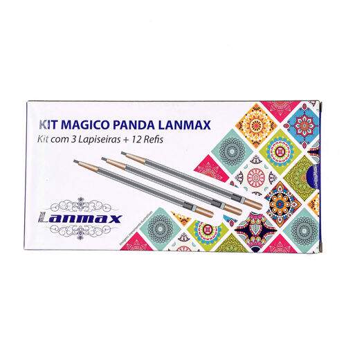 Descrição Kit Giz Mágico Panda Lanmax 3 Lapiseiras e 12 Refis