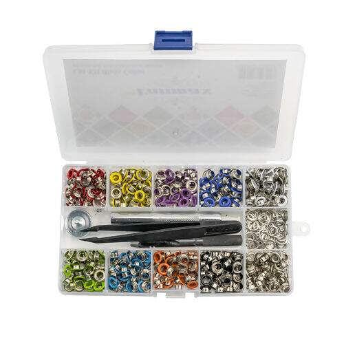 Aplicador de ilhós e vazador com 400 ilhoses coloridos.