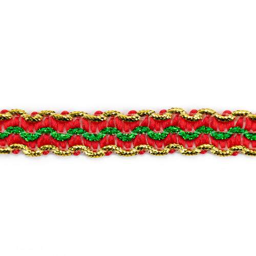 fornecedor_bling Passamanaria Galão 12 mm Ref. 75 Vermelho/Verde/Dourado - Peça c/ 20 mt