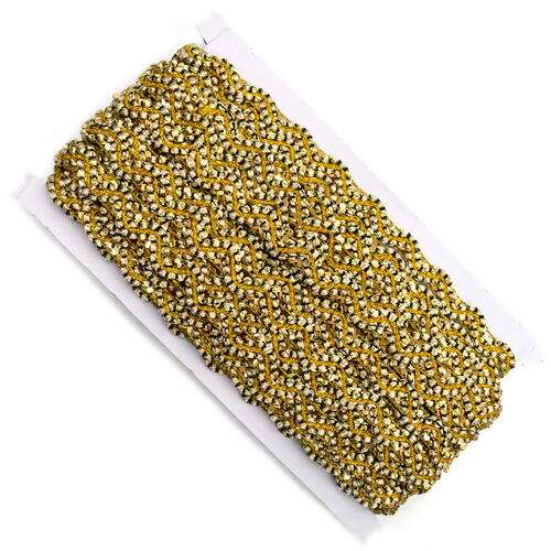 Galão dourado para acabamento de peças de decoração, roupas, fantasias etc.