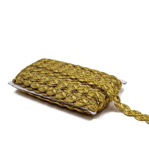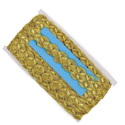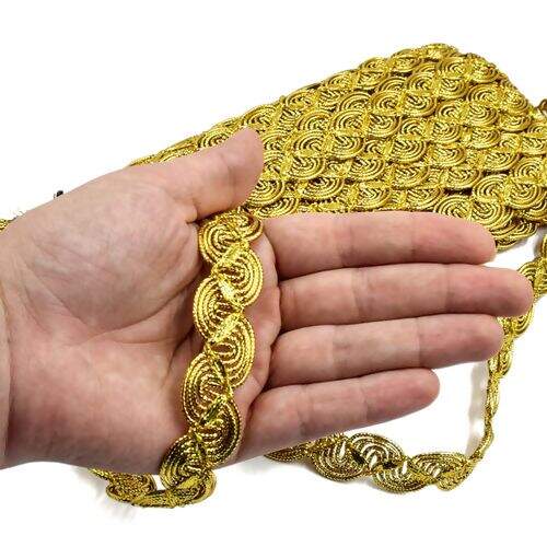 Galão dourado para acabamento de peças de decoração, roupas, fantasias etc.
