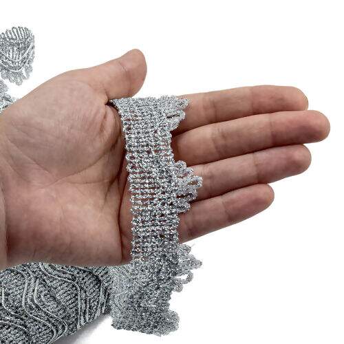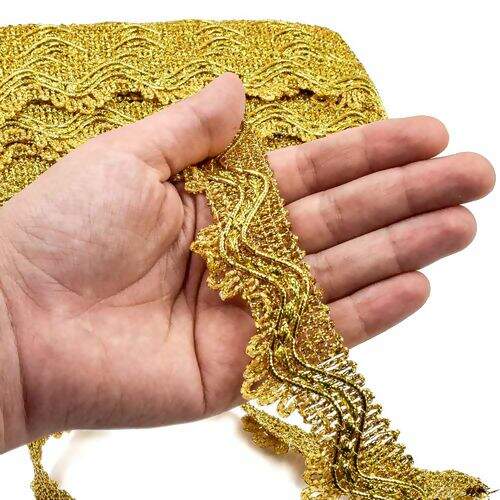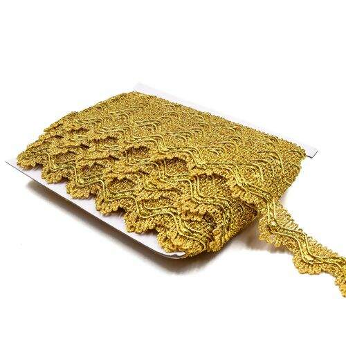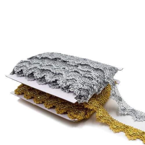 Passamanaria Galão de 3,5 cm de largura, disponível nas cores Dourado e Prateado, utilizado como aviamento para dar acabamento de peças de decoração, roupas, fantasias etc.