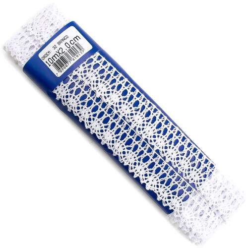 Descrição Renda de Algodão 2,0 cm Largura 032 -Branca - Peça c/ 10 mt