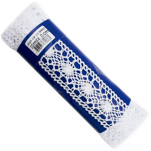 Descrição Renda de Algodão 4,0 cm Largura 118 1/2-Branca - Peça c/ 10 mt