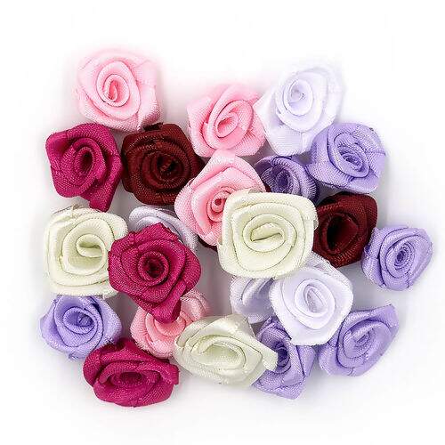 Rosinha feita de cetim com diâmetro de 1,5 cm bastante usada em artesanatos como biscuit, feltro, E.V.A, vidros decorados, embalagens, entre outros.