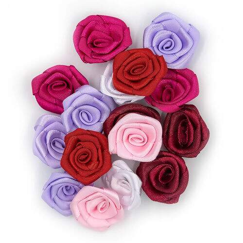Rosinha feita de cetim com diâmetro de 2,5 cm bastante usada em artesanatos como biscuit, feltro, E.V.A, vidros decorados, embalagens, entre outros.