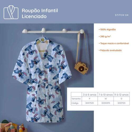 Descrição Roupão de Banho Infantil Döhler Stitch - Tamanho P