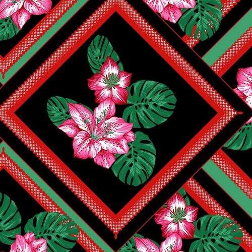 fornecedor_bling Tecido Chita de Algodão (Meio Metro) - Preto/Vermelho/Verde
