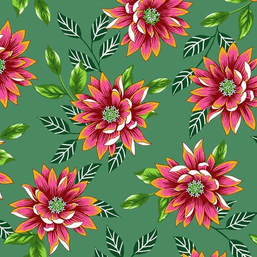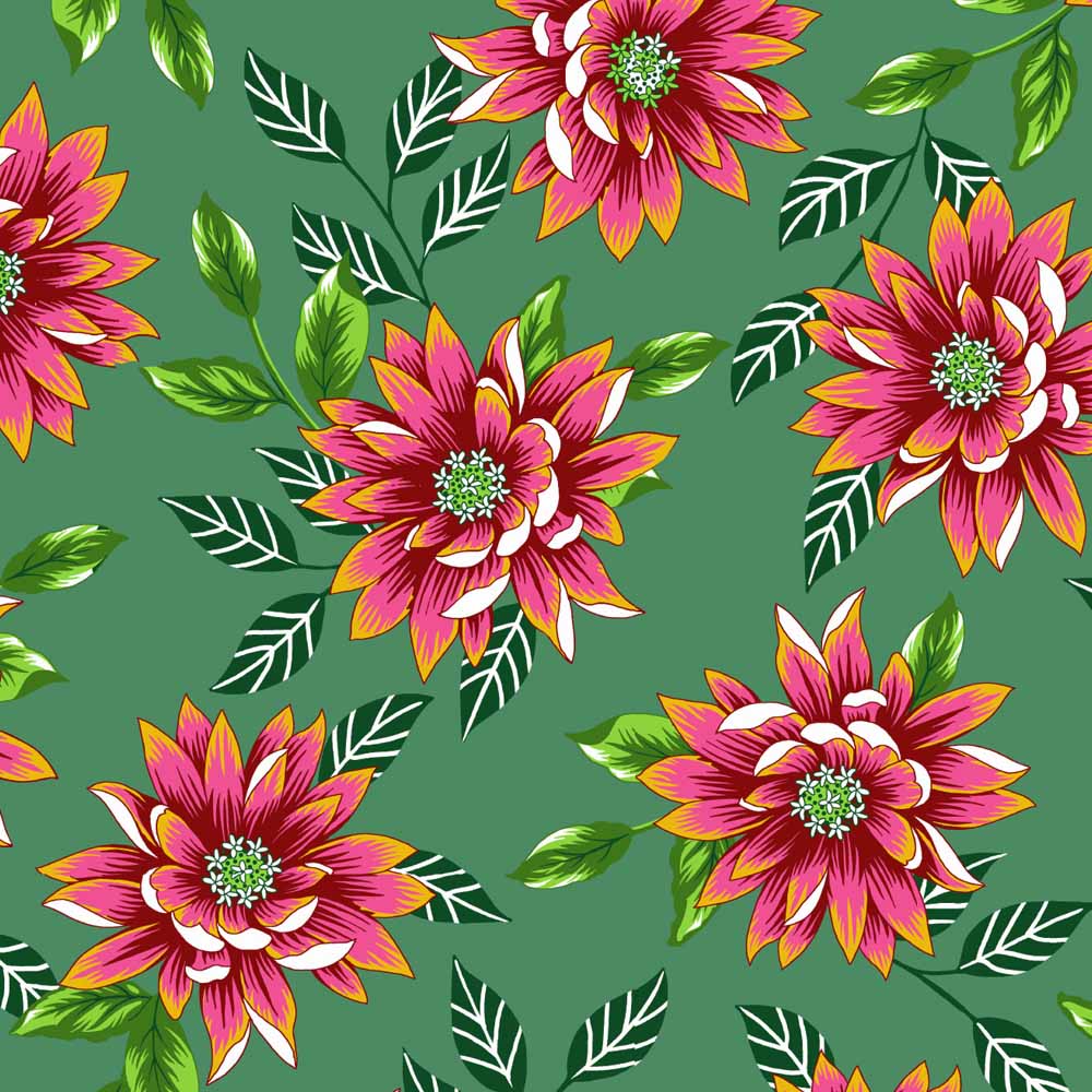 Descrição Tecido Chita de Algodão (Meio Metro) - Verde/Rosa