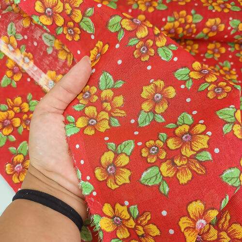 Descrição Tecido Chita de Algodão (Meio Metro) Ref. 3027V2 - Vermelho/Laranja/Verde