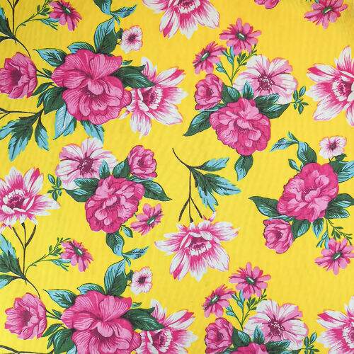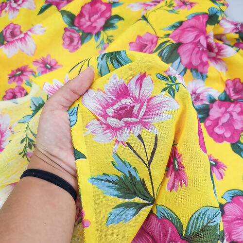 Descrição Tecido Chita de Algodão (Meio Metro) Ref. 3158V2 - Amarelo/Rosa/Turquesa