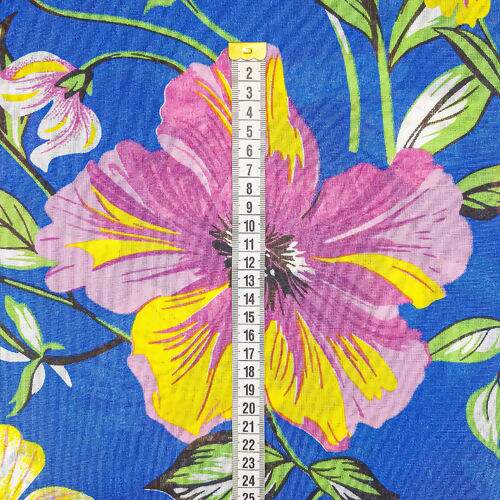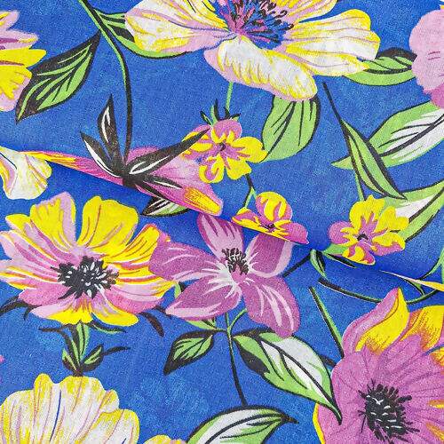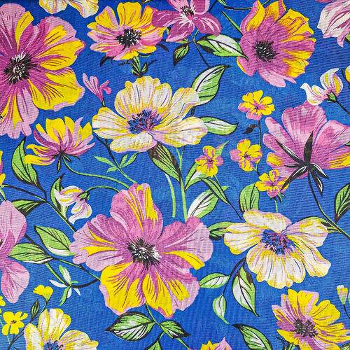 Descrição Tecido Chita de Algodão (Meio Metro) Ref. 3160V1 - Azul Royal/Roxo/Verde